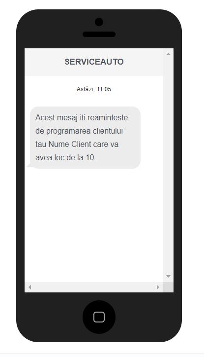 Notă: Clienții adăugați de dvs. vor primii mesaj personalizat cu numărul și link de programare cu 10, 5 și cu o zi înainte ca acesta să expire.